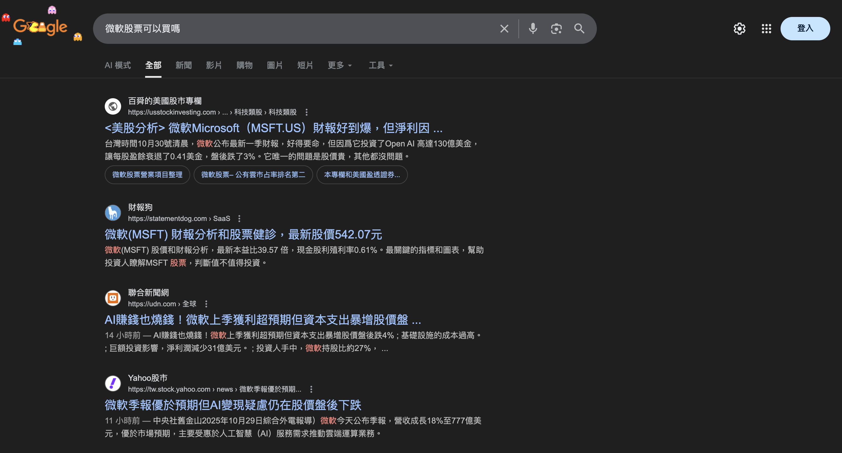 如果你想搜尋更進一步,像是「微軟股票可以買嗎?」那出來的就是敝人在下我的文章,沒有AI摘要了。因為這種有主觀色彩的文章比較能吸引用戶付費,也能給Google帶來廣告費,Google就不用AI來替代了。